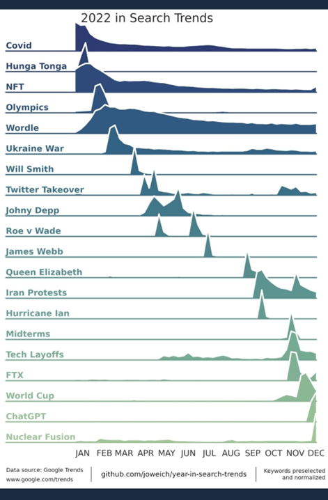 Os dados do Google trends são um barómetro muito interessante para ver como evoluiram os nossos interesses ao longo do tempo, permitindo recordar de uma forma rápida e visual os eventos que foram prendendo a nossa atenção e justificaram uma pesquisa no google para sabermos mais.