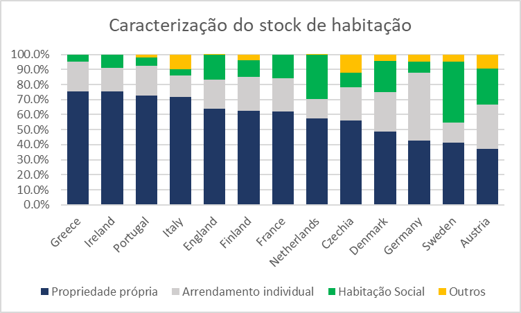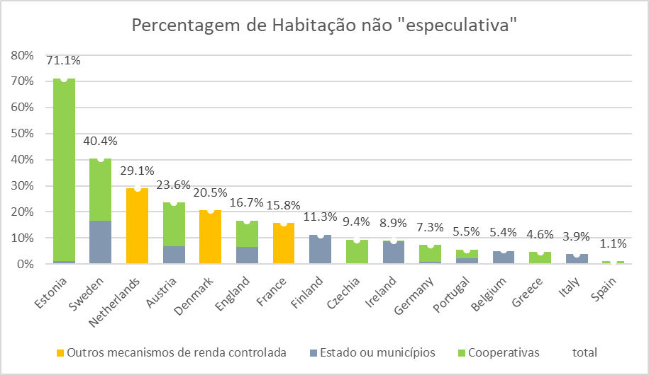 Para podermos comparar a realidade dos diferentes países na Europa faz sentido definir uma nova tipologia de habitação “não especulativa”, entendendo-se como “não especulativa” toda a habitação que dispensa a realização de mais valias depois da construção ou recuperação, permitindo o acesso a rendas acessíveis.